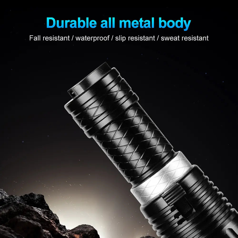 - 🛡 Aluminum Alloy Body — Corrosion-resistant, pressure-resistant, and built for underwater durability.