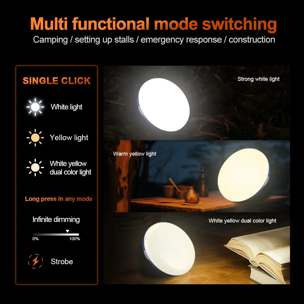 - Strong Magnetic Base – Hands-free attachment to cars, tents, or metal surfaces.