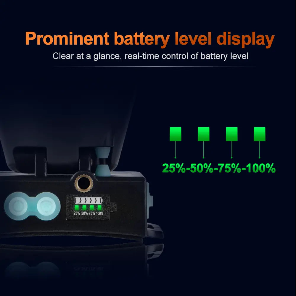 With its 60° adjustable angle, stand-hole design for mounting, and Type-C fast charging, this headlamp is engineered for convenience and reliability. The ABS body, IP65 waterproof rating, and shock-resistant build make it tough enough for demanding environments.
